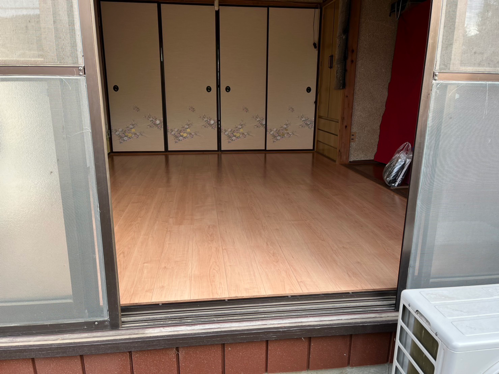 畳からフローリングへリフォームしました✨ 温水器、洗面台と頼んで頂き、この際だから床もと頼んで頂きました☺️ 水回りを綺麗にすると、床や壁も気になりますよね。一緒にリフォーム出来ますのでお気軽にお申し付け下さい♪