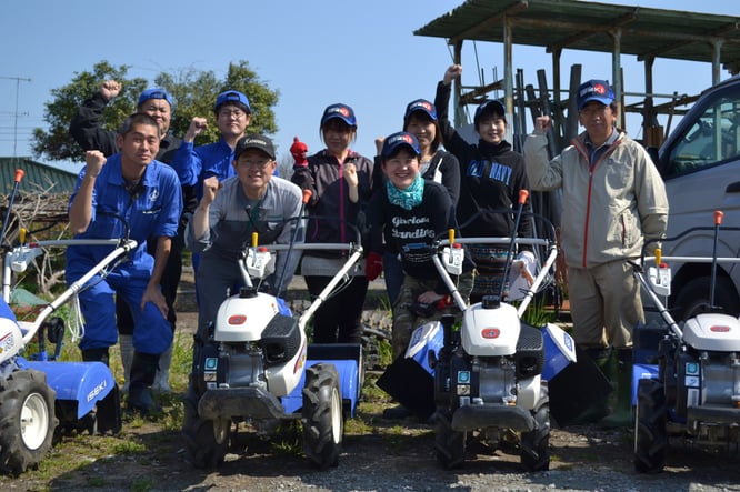 昨日、当社の新入社員と女性スタッフ向けにアグリヰセキさんが管理機の実演をして下さいました。
